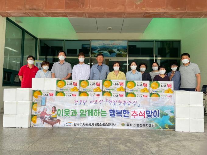 À̳¯ »ç¶û¹è´ÞºÎ·Î Âü¿©ÇÑ Á÷¿øµéÀº ¼ÛÆí(5kg) 23¹Ú½º¿Í ¹è 23¹Ú½º¸¦ ¸¶À»·Î Àü´ÞÇÏ¸ç ¡°Ãß¼®À» ¸Â¾Æ Á¤¼º²¯ ÁغñÇÑ ¼ÛÆí°ú °úÀÏÀ» µå½Ã°í ¾î¸£½Åµé²²¼ °Ç°ÇϼÌÀ¸¸é ÇÑ´Ù¡±¸ç ¡°Á¤ÀÌ ³ÑÄ¡´Â Áö¿ª»çȸ ºÐÀ§±â Á¶¼ºÀ» À§ÇØ ¾î¸£½ÅµéÀÇ ¼Õ°ú ¹ßÀÌ µÇ´Â »ç¶û¹è´ÞºÎ°¡ µÇ°Ú´Ù¡±°í ¸»Çß´Ù.