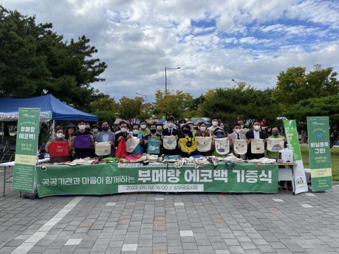 ¹ß´ë½Ä Âü¿©´ÜüµéÀº ºÎ¸Þ¶û ¿¡ÄÚ¹é 500°³¸¦ »ó¹«±Ý¿ä½ÃÀå¿¡ ±âÁõÇÏ°í ±âÁõ½ÄÀ» °¡Áø ÈÄ, ½ÃÀå ÀÌ¿ë Áֹΰú »óÀεéÀ» ´ë»óÀ¸·Î Ä·ÆäÀÎÀ» ÁøÇàÇϸç, ºñ´ÒºÀÅõ°¡ ¾ß±âÇϴ ȯ°æ¹®Á¦¿Í ÀüÅë½ÃÀå ÀÏȸ¿ëǰ ÁÙÀ̱â Ä·ÆäÀÎ ÃëÁö¿¡ ´ëÇØ È«º¸ÇÏ¿´´Ù.