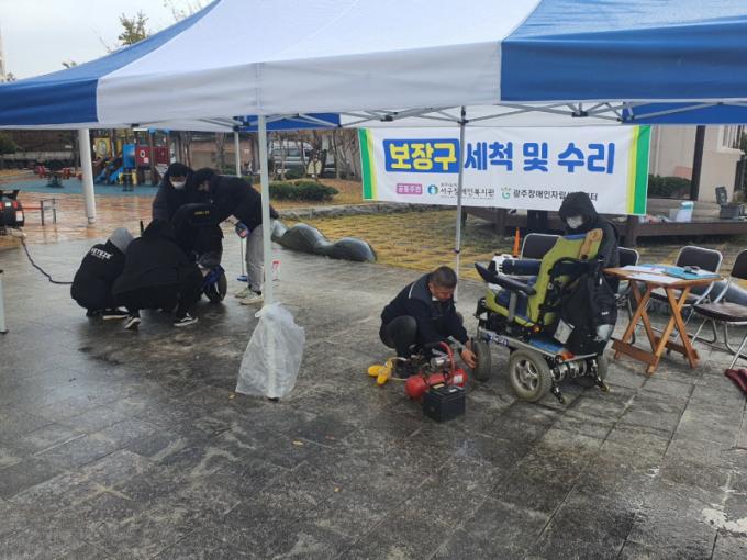 ÇØ´ç »ç¾÷Àº ¸Å³â ±¤ÁÖÀå¾ÖÀÎÀÚ¸³»ýȰ¼¾ÅÍ, ±¤ÁÖ¿¥ÄÚ¸®¾Æ¿Í ÇÔ²² º¸À屸 Á¡°Ë ¹× ¼ö¸®, ¼¼Ã´°ú ¼Òµ¶À» ½Ç½ÃÇÔÀ¸·Î½á Àå¾ÖÀÎ À̵¿ÀÇ ºÒÆí¼º ÇØ¼Ò¿Í ¼ö¸®¸¦ ÅëÇÑ Àåºñ ³ëÈÄÈ ¿¹¹æÀ» À§ÇØ ±âȹµÇ¾ú´Ù.