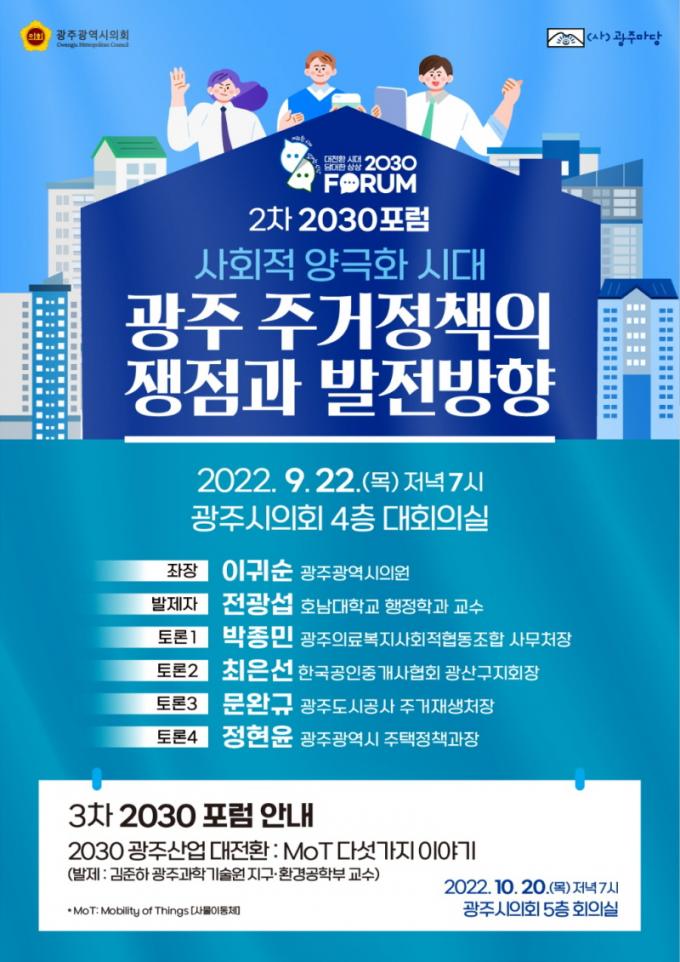 [È£³²´º½º¶óÀÎ = ¼ÀºÈ« ±âÀÚ] ±¤ÁÖ½ÃÀÇȸ´Â (»ç)±¤ÁÖ¸¶´ç 2030Æ÷·³°ú °øµ¿À¸·Î ¡®»çȸÀû ¾ç±ØÈ ½Ã´ë ±¤ÁÖ ÁÖ°ÅÁ¤Ã¥ÀÇ ÀïÁ¡°ú ¹ßÀü¹æÇ⡯À» ÁÖÁ¦·Î ¿À´Â 22ÀÏ(¸ñ) ±¤ÁÖ½ÃÀÇȸ 4Ãþ ´ëȸÀǽǿ¡¼ Åä·Ðȸ¸¦ °³ÃÖÇÑ´Ù.