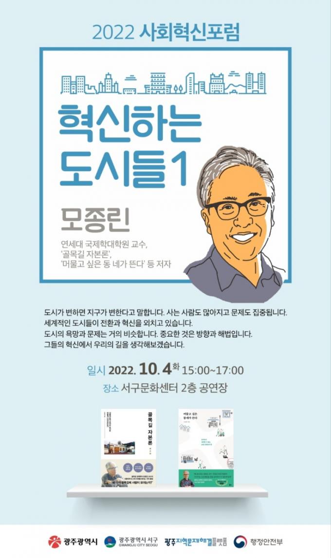 À̹ø Æ÷·³Àº ¡®Çõ½ÅÇÏ´Â µµ½Ãµé¡¯À̶ó´Â ÁÖÁ¦·Î 10¿ùºÎÅÍ µÎ ´Þ°£ ÁøÇàµÇ´Â 2022³â ±¤ÁÖ »çȸÇõ½ÅÆ÷·³ÀÇ Ã¹ ¹øÂ° Çà»ç·Î ¼¼°èÀûÀ¸·Î Çõ½ÅÇÏ´Â µµ½ÃµéÀÇ »ç·Ê¸¦ ÅëÇØ ±¤ÁÖÀÇ ±æÀ» ¸ð»öÇϱâ À§ÇØ ¸¶·ÃµÈ °ÍÀÌ´Ù.