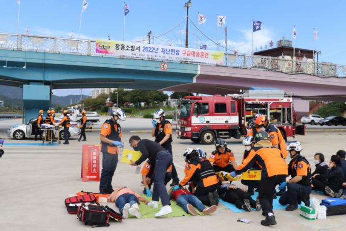 [È£³²´º½º¶óÀÎ = ¼ÀºÈ« ±âÀÚ] ÀåÈï¼Ò¹æ¼(¼Àå ½ÅÇâ½Ä)´Â Áö³ 6ÀÏ ÀåÈﱺ ÀåÈïÀ¾ ŽÁø° ÀåÈï±³¿¡¼ ´Ù¸® ºØ±«·Î ÀÎÇÑ ´Ù¼ö»ç»óÀÚ ¹ß»ýÀ» ´ëºñÇØ À¯°ü±â°ü °£ À¯±âÀûÀÎ °øÁ¶ ü°è ±¸Ãà°ú ÅëÇÕ ´ëÀÀ ´É·Â °È¸¦ À§ÇÑ ±¸±Þ´ëÀÀÈÆ·ÃÀ» ½Ç½ÃÇß´Ù°í ¹àÇû´Ù.