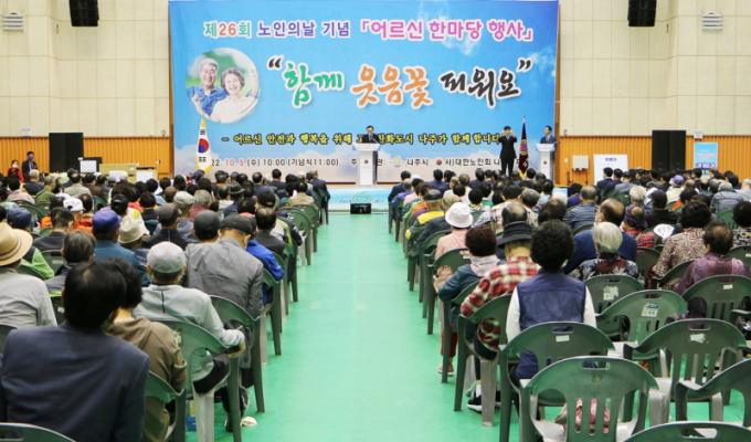 [È£³²´º½º¶óÀÎ = ¼ÀºÈ« ±âÀÚ] ³ªÁÖ½Ã(½ÃÀå À±º´ÅÂ)´Â Áö³ 5ÀÏ Á¾ÇÕ½ºÆ÷Ã÷ÆÄÅ© ´Ù¸ñÀûüÀ°°ü¿¡¼ Á¦26ȸ ³ëÀÎÀÇ ³¯À» ±â³äÇØ ¡®¾î¸£½Å ÇѸ¶´ç¡¯ Çà»ç¸¦ °³ÃÖÇß´Ù°í 6ÀÏ ¹àÇû´Ù.