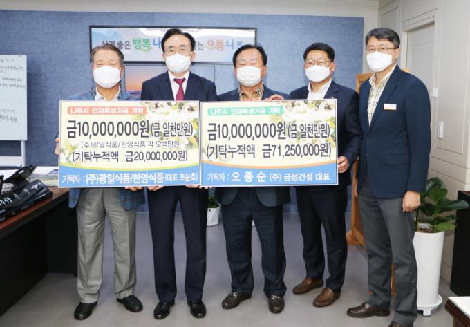 [È£³²´º½º¶óÀÎ = ¼ÀºÈ« ±âÀÚ] ³ªÁÖ½Ã(½ÃÀå À±º´ÅÂ)´Â Áö³ 6ÀÏ ¿ÀÁ¾¼ø ¢ß±Ý¼º°Ç¼³ ´ëÇ¥¿Í Á¶¹®È£ ¢ß±¤ÀϽÄǰ ´ëÇ¥°¡ ÀÎÀçÀ°¼º±â±Ý 1000¸¸¿øÀ» ³ªÁÖ±³À°ÁøÈïÀç´Ü¿¡ °¢°¢ ±âŹÇß´Ù°í 7ÀÏ ¹àÇû´Ù.