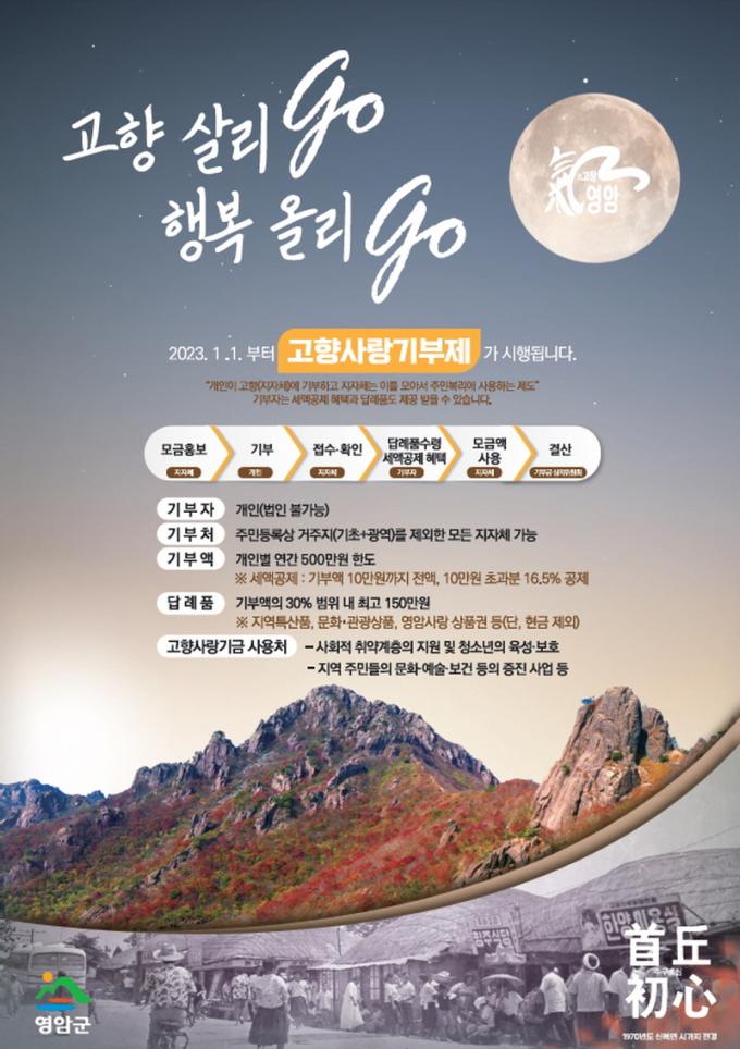 [È£³²´º½º¶óÀÎ = ¼ÀºÈ« ±âÀÚ] ¿µ¾Ï±º(±º¼ö ¿ì½ÂÈñ)Àº Áö¹æÀçÁ¤ È®Ãæ°ú Áö¿ª°æÁ¦ Ȱ¼ºÈ¸¦ À§ÇÑ ¡¸°íÇâ»ç¶û ±âºÎ±Ý¿¡ °üÇÑ ¹ý·ü ½ÃÇà·É¡¹ÀÌ Áö³ 9¿ù 13ÀÏ °øÆ÷µÇ¾î 2023. 1. 1.ºÎÅÍ ½ÃÇàµÊ¿¡ µû¶ó »çÀüÁغñ¿¡ ÇàÁ¤·ÂÀ» ÁýÁßÇϰí ÀÖ´Ù.