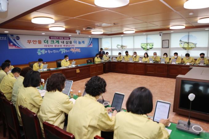 ±è»ê ±º¼ö´Â Áö³ 11ÀÏ ¹Î¼±8±â ÃëÀÓ 100ÀÏÀ» ¸ÂÀÌÇØ ¹«¾È°íµîÇб³ Á¤¹®¿¡¼ ½Ò ¼Òºñ ÃËÁøÀ» À§ÇÑ ¾ÆÄ§¹ä ¸Ô±â Ä·ÆäÀο¡ Âü¿©ÇÏ´Â °ÍÀ¸·Î ù ÀÏÁ¤À» ½ÃÀÛÇß´Ù. ÀÌ¾î °³ÃÖµÈ Á¤·ÊȸÀÇ¿¡¼´Â ¹«¾È ¹ßÀüÀ» °ßÀÎÇÒ 7°³ ºÐ¾ß 100´ë °ø¾àÀ» Á¦½ÃÇÏ¸ç ±º¹Îµé°úÀÇ ¼ÒÅëÀ» °ÈÇØ ³ª°¡°Ú´Ù´Â ÀÇÁö¸¦ ¹àÇû´Ù.