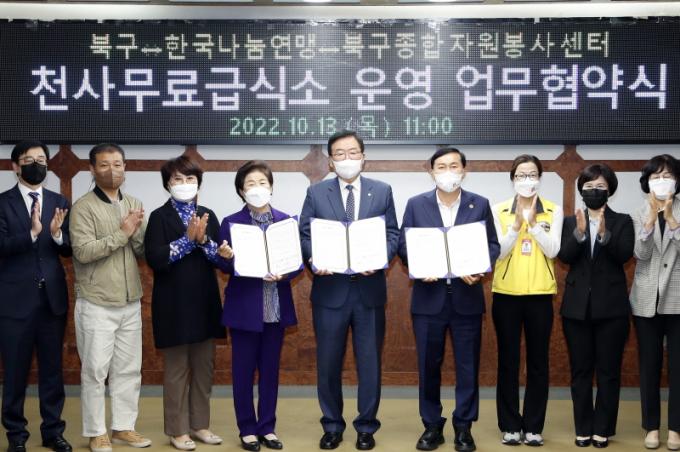 13ÀÏ ºÏ±¸¿¡ µû¸£¸é (»ç)Çѱ¹³ª´®¿¬¸Í, ºÏ±¸Á¾ÇÕÀÚ¿øºÀ»ç¼¾ÅÍ¿Í ¡®Ãµ»ç¹«·á±Þ½Ä¼Ò¡¯ ¿î¿µ Àç°³¸¦ À§ÇÑ ¾÷¹«Çù¾àÀ» ü°áÇß´Ù.