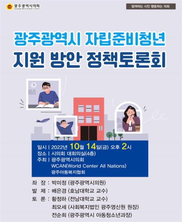 [È£³²´º½º¶óÀÎ = ¼ÀºÈ« ±âÀÚ] ±¤ÁÖ±¤¿ª½ÃÀÇȸ´Â 14ÀÏ ¿ÀÈÄ 2½Ã ½ÃÀÇȸ 4Ãþ ´ëȸÀǽǿ¡¼ ¡®ÀÚ¸³Áغñû³â Áö¿ø ¹æ¾È¸¶·Ã¡¯À̶ó´Â ÁÖÁ¦·Î Á¤Ã¥Åä·Ðȸ¸¦ °³ÃÖÇÑ´Ù.