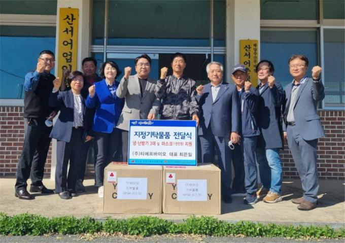 °æ±âµµ ºÎõ½Ã¿¡ ¼ÒÀçÇÑ (ÁÖ)Ƽ¿¡ÇÁ ¹ÙÀÌ¿À´Â ¾ÈÀüÇÑ ÇѾàÀç »ý»ê°ú °ø±ÞÀ» À§ÇÑ ½º¸¶Æ®ÆÊ ÇÁ·ÎÅäÄÝ °³¹ßÀ» ÇÑ ¹ÙÀÌ¿À ¾÷ü·Î ÇöÀç ÀåÈﱺ¿¡ ÀÔÁÖ °èȹÀ» ÁغñÇϰí ÀÖ´Â °úÁ¤¿¡ Áö¿ª¹ßÀü¿¡ º¸ÅÆÀÌ µÇ°íÀÚ ³Ã³¹æ±â(½Ã°¡ 330¸¸¿ø»ó´ç) 3´ë¿Í ¸¶½ºÅ© 2õ¸Å¸¦ ±âÁõÇÏ¿´´Ù.