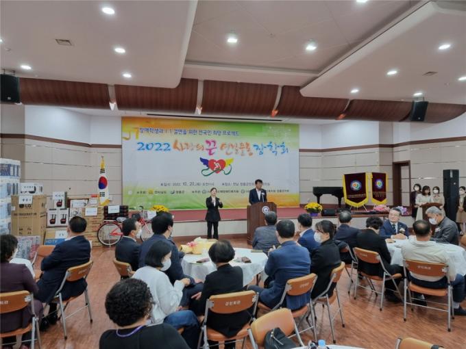 [È£³²´º½º¶óÀÎ = ¼ÀºÈ« ±âÀÚ] ÀåÈﱺÀÌ ÈÄ¿øÇϰí Àü³²½ÅüÀå¾ÖÀκ¹Áöȸ ÀåÈﱺÁöºÎ°¡ ÁÖ°üÇÑ ¡®Á¦2ȸ »ç¶ûÀÇ ²ö ¿¬°á¿îµ¿ ÀåÇÐȸ ±â³ä½Ä¡¯ Çà»ç°¡ 10¿ù 20ÀÏ ÀåÈﱺ¹Îȸ°ü¿¡¼ ¿·È´Ù.
