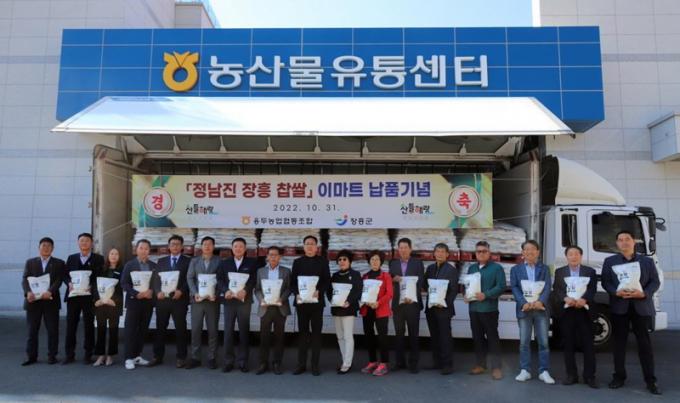 À̳¯ ÃâÇϽĿ¡´Â ÀåÈﱺ Á¶¼®ÈÆ ºÎ±º¼ö, ¹®Á¤°É ³ó»ê°úÀå, ¹Ú±â½Â ³óÇù ÀåÈﱺÁöºÎ ÁöºÎÀå, ¿ëµÎ³óÇù ÀÓ¿ø µîÀÌ Âü¼®ÇÑ °¡¿îµ¥ ÁøÇàµÆ´Ù. À̹ø¿¡ ³³Ç°ÇÏ´Â Âý½ÒÀº À̸¶Æ® ⸳ 29ÁÖ³â Çà»ç »óǰÀ¸·Î ¿ëµÎ³óÇùÀÌ ÀåÈﱺ À嵿¡¤ÀåÆò¸é 435³ó°¡¿Í °è¾àÀç¹è¸¦ ÅëÇØ »ý»êÇÑ µ¿ÁøÂý½Ò ´ÜÀÏǰÁ¾ 480Åæ, 10¾ï¿ø ¹°·®ÀÌ´Ù.