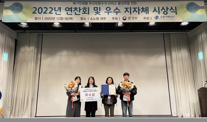 [È£³²´º½º¶óÀÎ = ¼ÀºÈ« ±âÀÚ] ³ªÁÖ½Ã(½ÃÀå À±º´ÅÂ)´Â ȯ°æºÎ°¡ ÁÖÃÖÇϰí Çѱ¹ÀüÀÚÁ¦Ç°ÀÚ¿ø¼øÈ¯°øÁ¦Á¶ÇÕÀÌ ÁÖ°üÇÑ ¡®2022 Æó°¡ÀüÁ¦Ç° ¹«»ó¹æ¹®¼ö°Å ¿ì¼ö ÁöÀÚü °æÁø´ëȸ¡¯¿¡¼ »ç¾÷ ¿î¿µ ºÎ¹® ¿ì¼ö±â°ü¿¡ ¼±Á¤, ȯ°æºÎÀå°ü»óÀ» ¼ö»óÇß´Ù°í 2ÀÏ ¹àÇû´Ù.