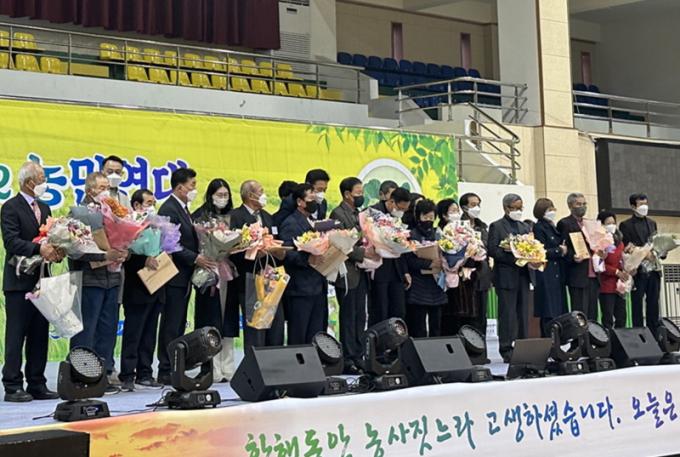 Çà»ç¿¡¼´Â ÀÏÆò»ý ³ó¾÷¿¡ Á¾»çÇÏ°í ³ó¾÷¹ßÀüÀ» À§ÇØ ¼±µµÀû ¿ªÇÒÀ» ¼öÇàÇÑ ±ºÁ¤À¯°øÀÚ 10ºÐ¿¡°Ô À¯°ø ǥâÀ» Àü´ÞÇß´Ù.´ëµ¿ÇѸ¶´çÀº ³ó¹Î¿¬´ë ³óÃÌÁöµµÈ¸ÀåÀ» ºñ·ÔÇÑ ³ó¾÷,Ãà»ê,³óÃÌ 9°³ ¼Ò¼Ó´Üü°¡ ÇÔ²² Âü¿©Çϰí, Á¶¼®ÈÆ ÀåÈïºÎ±º¼ö, ¿ÕÀ±Ã¤ ÀåÈﱺÀÇȸ ÀÇÀå ¹× °¢ Áö¿ª ³ó¾÷´Üü µî 500¿©¸íÀÌ Âü¼®Çß´Ù.