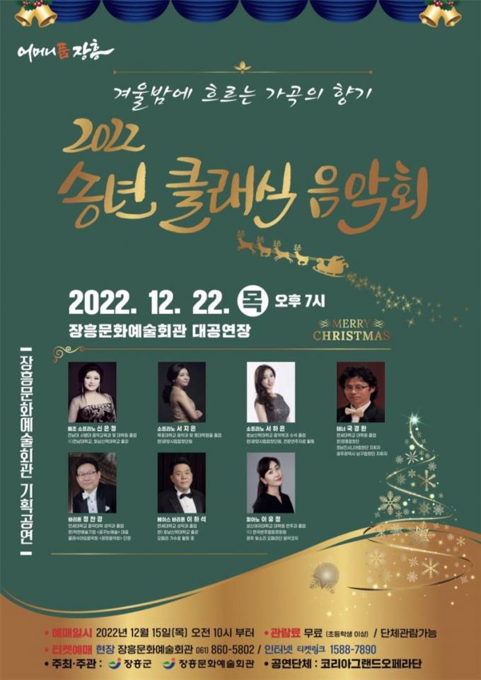 [È£³²´º½º¶óÀÎ = ¼ÀºÈ« ±âÀÚ] ÀåÈﱺÀº 12¿ù 22ÀÏ(¸ñ) ¿ÀÈÄ7½Ã ÀåÈ﹮ȿ¹¼úȸ°ü¿¡¼ °Ü¿ï¹ã¿¡ È帣´Â °¡°îÀÇ Çâ±â ¡®2022 ¼Û³â Ŭ·¡½ÄÀ½¾Çȸ¡¯ °ø¿¬À» °³ÃÖÇÑ´Ù°í ¹àÇû´Ù.
