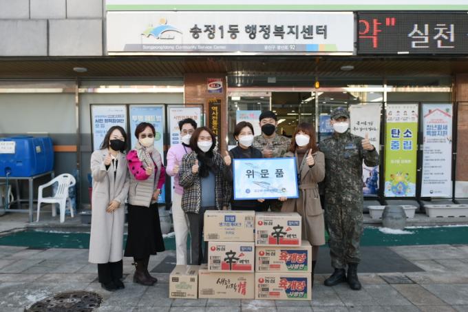 °ø±º Á¦1ÀüÅõºñÇà´ÜÀº ¿¬¸»À» ¸ÂÀÌÇÏ¿© Áö¿ªÁֹεé°úÀÇ À¯´ë°ü°è Çü¼ºÀ» À§ÇØ À§¹®Ç°À» Àü´ÞÇÏ¸ç ¹Î¿ø¿¹¹æÈ°µ¿À» ½Ç½ÃÇß´Ù. (»çÁø = Áß»ç ¹Ú¼ºÇö )