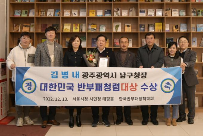 [È£³²´º½º¶óÀÎ = ¼ÀºÈ« ±âÀÚ] ±èº´³» ±¤ÁÖ ³²±¸Ã»ÀåÀÌ Çѱ¹¹ÝºÎÆÐÁ¤Ã¥ÇÐȸ ÁÖ°ü ¡®2022³â ´ëÇѹα¹ ¹ÝºÎÆÐ û·Å´ë»ó¡¯ °ø¸ð¿¡¼ ±ú²ýÇÑ °øÁ÷»çȸ ¹®È ±¸Ãà¿¡ ¾ÕÀå¼± °ø·Î·Î ¹ÝºÎÆÐ û·Å´ë»ó ¼ö»óÀÚ ¸í´Ü¿¡ À̸§À» ¿Ã·È´Ù.