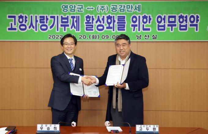 [È£³²´º½º¶óÀÎ = ¼ÀºÈ« ±âÀÚ] ¿µ¾Ï±º(±º¼ö ¿ì½ÂÈñ)Àº »çȸÀû±â¾÷ ¢ß°ø°¨¸¸¼¼(´ëÇ¥ÀÌ»ç °íµÎȯ)¿Í 20ÀÏ, ¿µ¾Ï±ºÀÇ °íÇâ»ç¶û±âºÎÁ¦ Ȱ¼ºÈ¸¦ À§ÇÑ ¾÷¹«Çù¾àÀ» ü°áÇß´Ù°í ¹àÇû´Ù.