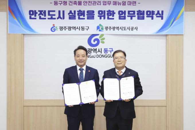 [È£³²´º½º¶óÀÎ = ¼ÀºÈ« ±âÀÚ] ±¤Áֽà µ¿±¸(ûÀå ÀÓÅÃ)´Â ±¤ÁÖ±¤¿ª½Ãµµ½Ã°ø»ç¿Í ¡®¾ÈÀü µµ½Ã ½ÇÇöÀ» À§ÇÑ ¾÷¹«Çù¾à¡¯À» ü°áÇÏ°í µ¿±¸Çü °ÇÃ๰ ¾ÈÀü°ü¸® ¸Å´º¾ó ¸¶·Ã¿¡ º»°Ý ³ª¼±´Ù°í ¹àÇû´Ù.