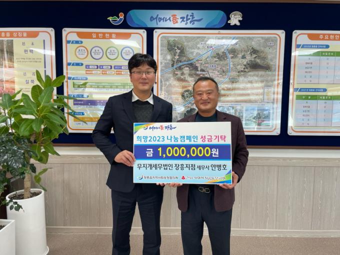 [È£³²´º½º¶óÀÎ = ¼ÀºÈ« ±âÀÚ] ¹«Áö°³¼¼¹«¹ýÀÎ ÀåÈïÁö»ç ¾Èº´È£ ¼¼¹«»ç´Â 27ÀÏ ÀÌ¿ôµ½±â ¼º±Ý 100¸¸¿øÀ» ÀåÈïÀ¾ Áö¿ª»çȸº¸ÀåÇùÀÇü(°øµ¿À§¿øÀå ±æÇöÁ¾, °°æÀÏ)¿¡ ±âŹÇß´Ù.