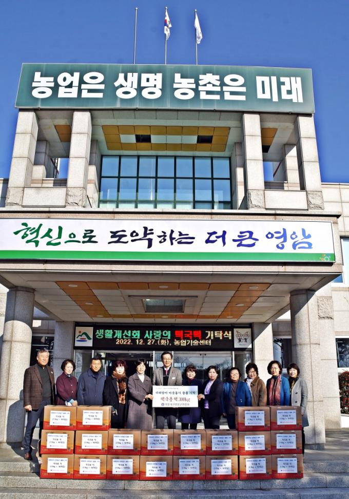 [È£³²´º½º¶óÀÎ = ¼ÀºÈ« ±âÀÚ] »ýȰ°³¼±¿µ¾Ï±º¿¬ÇÕȸ´Â ¿µ¾Ï±ºÁö¿ª»çȸº¸ÀåÇùÀÇü¸¦ ÅëÇØ »õÇØ¸ÂÀÌ °ü³» ¾î·Á¿î ÀÌ¿ôµéÀ» À§ÇÑ ¶±±¹¶± 300kg¸¦ ±âŹÇß´Ù. ÀÌ ºÀ»çȰµ¿Àº ¸Å³â 11°³ À¾¸é »ýȰ°³¼±È¸¿øµéÀÌ »ç¶ûÀÇ ½ÒÀ» ¸ð¾Æ¼ ¶±±¹¶±À» ¸¸µé¾î ±âºÎÇÏ´Â Çà»ç·Î 18³â° Áö¼ÓµÇ°í ÀÖ´Ù.
