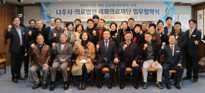 ³ªÁÖ½Ã(½ÃÀå À±º´ÅÂ)´Â 29ÀÏ ½Ãû»ç ÀÌȽǿ¡¼ ÀÇ·á¹ýÀÎ ¼¼ÈÀÇ·áÀç´Ü(ÀÌ»çÀå ±è¹Ì¼ø)°ú ¡®°ø°øÇü ÀÇ·áü°è ±¸ÃàÀ» À§ÇÑ ¾÷¹«Çù¾à¡¯À» ü°áÇß´Ù°í ¹àÇû´Ù. ¼¼ÈÀÇ·áÀç´ÜÀº ³ªÁֽà ±Ýõ¸é¿¡ À§Ä¡ÇÑ ³ªÁÖÈ¿»ç¶ûº´¿ø¡¤È¿»ç¶û¿ä¾çº´¿øÀ» ¿î¿µÇÏ´Â ÀÇ·á¹ýÀÎÀÌ´Ù.