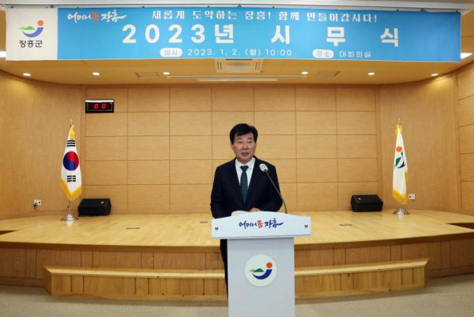 [È£³²´º½º¶óÀÎ = ¼ÀºÈ« ±âÀÚ] ÀåÈﱺ´Â 2ÀÏ ´ëȸÀǽǿ¡¼ ½Ã¹«½ÄÀ» °®°í ¡®ÀåÈïÀÇ µµ¾à! Èñ¸ÁÀÇ 2023³â¡¯ »õ Ãâ¹ßÀ» ´ÙÁüÇÏ¸ç °ø½Ä ¾÷¹«¿¡ µé¾î°¬´Ù.