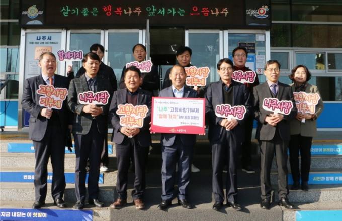 ³ªÁÖ½Ã(½ÃÀå À±º´ÅÂ)´Â °íÇâ»ç¶û±âºÎÁ¦¸¦ ³Î¸® ¾Ë¸®°í ÀÚ¹ßÀû Âü¿©¸¦ µ¶·ÁÇÏ´Â ¡®³ªÁÖ °íÇâ»ç¶û±âºÎÁ¦ ÇÔ²² °¡Ä¡ Ä·ÆäÀΡ¯À» ÃßÁøÇÑ´Ù°í 3ÀÏ ¹àÇû´Ù. Ä·ÆäÀΠù Âü¿©ÀÚ´Â Áö³ ÇØ ¿¬¸» °íÇâ»ç¶û±âºÎÁ¦ ´ä·Êǰ °ø±ÞÀ» À§ÇØ ¾÷¹«Çù¾àÀ» ü°áÇÑ ¾÷ü 4°÷ ´ëÇ¥µéÀÌ´Ù.