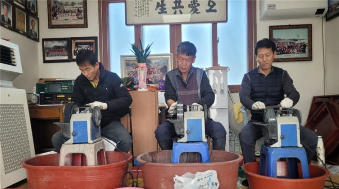 ³ó¹Îȸ¿¡¼ ÁøÇàÇÏ´Â ¹«·á Ä®°¥ÀÌ ºÀ»ç´Â 1¿ù 3ÀϺÎÅÍ 19ÀϱîÁö ÁøÇàµÇ°í ÀÖ´Ù.À̹ø Ä®°¥ÀÌ ¹«·á ºÀ»ç´Â ¿ëµÎ³óÇù¿¡¼ ¼ýµ¹À» Áö¿ø¹Þ¾Æ 1ÀÏ ³ó¹Îȸ¿ø 3¸íÀÌ ±³´ë·Î Âü¿©Çϰí ÀÖ´Ù. Áö¿ª ÁÖ¹ÎÀº ¡°¹«µ®Áø Ä®À» »ç¿ëÇÏ±â ÆíÇÏ°Ô ´Ùµë¾î ÁÖ¾î ¸Å¿ì °¨»çÇÑ´Ù¡±¸ç °¨»çÀÇ ¶æÀ» ÀüÇß´Ù.
