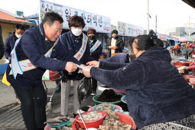 [È£³²´º½º¶óÀÎ = ¼ÀºÈ« ±âÀÚ] ¹«¾È±º(±º¼ö ±è»ê)Àº ¼³ ¸íÀýÀ» ¸Â¾Æ ħüµÈ ÀüÅë½ÃÀå ¹× °ñ¸ñ»ó±Ç¿¡ Ȱ·ÂÀ» ºÒ¾î ³Ö°íÀÚ ¿À´Â 20ÀϱîÁö Àü °øÁ÷ÀÚ°¡ Âü¿©ÇÏ´Â ¼³¸ÂÀÌ À庸±â Çà»ç¿Í ¹°°¡¾ÈÁ¤ Ä·ÆäÀÎÀ» ½Ç½ÃÇÑ´Ù.