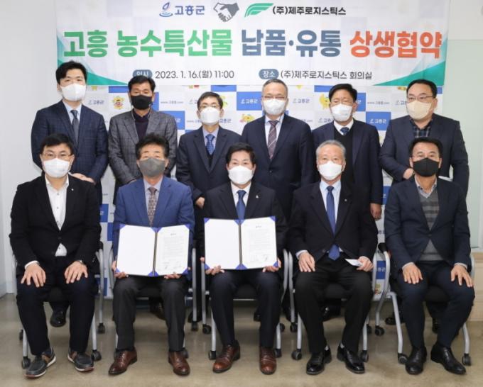 ÀÌ¾î ¢ßÁ¦ÁÖ·ÎÁö½ºÆ½½º °¼º±¸ ´ëÇ¥´Â ¡°½Ò, À¯ÀÚ µî ´Ù¾çÇϰí ǰÁú ÁÁÀº °íÈï ³ó¼öƯ»ê¹°À» Á¦ÁÖµµÀÇ ´ëÇü¸¶Æ®, ½´ÆÛ¸¶ÄÏ µî¿¡ ´Ù¾çÇÏ°Ô À¯Åë ÇÒ °èȹÀÌ´Ù¡±¸ç ¡°°ø¿µ¹Î ±º¼ö¿Í ³óÇù °íÈﱺÁöºÎÀå, ÆÈ¿µ³óÇùÀå, Èï¾ç³óÇùÀå²²¼ °íÈï³ó¼öƯ»ê¹° ÆÇ·Î¸¦ È®º¸Çϰڴٴ °ÇÑ ÀÇÁö·Î Á÷Á¢ Á¦ÁÖµµ º»»ç±îÁö ¹æ¹®ÇØ, ¿À´ÃÀÇ °á°ú¸¦ ¸¸µé¾î ³Â´Ù¡±°í ¸»Çß´Ù.