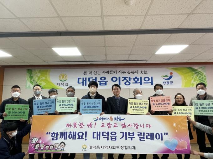 ±âºÎ ±Ý¾×Àº ÃÑ 1,887¸¸ ¿øÀÌ¸ç ±âºÎÀڴ ž»ê»ç 200¸¸ ¿ø, ȸº¹ÀDZ³È¸,´ë´ö³²¡¤¿©ÀÚÀ²¹æ¹ü´ë, ´ë´öÁÖÀ¯¼Ò, ÇѸ¶À½±³È¸, ´ë¼ºÁ¾ÇÕ°ÇÀç, ´ë´öÄ¡°úÀÇ¿ø, õ°ü³ó¾÷Çùµ¿Á¶ÇÕ, ³»Àú¸¶À» ±è¼º¹é´Ô, »êÁ¤¸¶À» ÀÌÀå ¹Ú¼øÇÊ´Ô, °ÅÁ¤¸¶À» ³²Á¤Áø´Ô °¢ 100¸¸ ¿ø, ´ë´öÀç°¡º¹Áö¼¾ÅÍ À̼ÛÈ¡¤±èÀμ÷´Ô, »õ¸¶À»ÁöµµÀÚÇùÀÇȸ, ´ë´ö°æµ¿º¸ÀÏ·¯, ´ë´öȸÁøÀå·Ê½ÄÀå, ¢ßõ¿ìMS½ÄÀÚÀ縶Ʈ´ë´öÁ¡, ÀåÈï³²ºÎ±³È¸, ´ë´öÀ¾¾îÃ̰èÇùÀÇȸ, ³ª´©¸®Àç°¡º¹Áö¼¾ÅÍ, ¾çÇϸ¶À» ¼Û¼º¸¸´Ô °¢ 50¸¸ ¿ø, ´ö¾ç»ç ½Ò(20kg) 30°¡¸¶, ±× ¿Ü °³ÀÎ ¹× ´Üü¿¡¼ 187¹é¸¸ ¿øÀ» ±âºÎÇß´Ù.