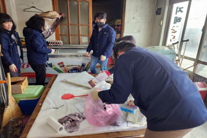 ÀåÆò¸é»ç¹«¼Ò¿Í ÀåÈïÁö¿ªÀÚȰ¼¾ÅÍ Á÷¿øµéÀº ¸ø¾²°Ô µÈ Áý¾È °¡Àçµµ±¸¿Í ÀÇ·ùµéÀ» Á¤¸®ÇÏ°í Æó±â¹°À» ¼ö°ÅÇß´Ù. ÀåÆò¸éÀº ÈÀçÇöÀå º¹±¸¿Í µµ¹è¡¤ÀåÆÇ ½Ã°ø µî Áö¿ø ´ëÃ¥À» ¸¶·ÃÇÏ°í »çÈİü¸®¿¡ öÀú¸¦ ±âÇÒ ¹æÄ§ÀÌ´Ù.