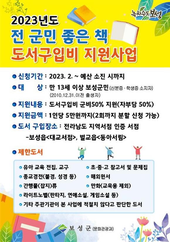 ¡®Àü ±º¹Î ÁÁÀº Ã¥ µµ¼±¸ÀÔ Áö¿ø»ç¾÷¡¯Àº º¸¼º±º¹Î(Áֹεî·Ï»ó ¸¸ 13¼¼ ÀÌ»ó º¸¼º±º °ÅÁÖÀÚ) ¶Ç´Â Áö¿ª ¼ÒÀç Áß¡¤°íµîÇлý¿¡°Ô µµ¼ ±¸ÀÔºñÀÇ 50%¸¦ Áö¿øÇØÁÖ´Â »ç¾÷ÀÌ´Ù.