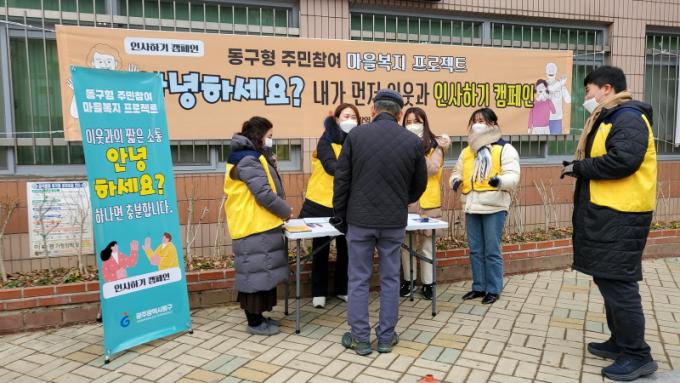 [È£³²´º½º¶óÀÎ = ¼ÀºÈ« ±âÀÚ] ±¤ÁÖ µ¿±¸(ûÀå ÀÓÅÃ)´Â ÀÌ¿ô°ú ¸ÕÀú ÀλçÇÏ´Â µû¶æÇÑ Çູ µ¿±¸ Á¶¼ºÀ» À§ÇØ °ü³» 13°³ µ¿ Àü¿ªÀ» Áß½ÉÀ¸·Î ÇÏ´Â ¡®°ñ¸ñ±æ(°í»ô±æ) ¾ÈºÎ ÀÎ»ç ¾È³çÇϼ¼¿ä¡¯ Ä·ÆäÀÎÀ» ÁøÇàÇÑ´Ù°í ¹àÇû´Ù.