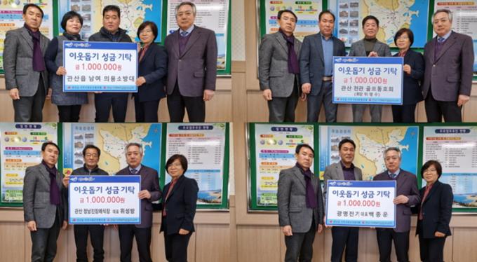 ¶ÇÇÑ, °ü»êÁß 29ȸ µ¿Ã¢È¸(ȸÀå ¹Ú½Â·¡) 50¸¸¿ø, õ°üÀç°¡º¹Áö¼¾ÅÍ(´ëÇ¥ ÀÌÁ¤¹Ì) 30¸¸¿ø, °ü»êÀ¾¿Á´ç2±¸ ÁÖ¹Î(ÀÌÀå À§¼º¼®) 65¸¸¿ø µî »õÇØ dz¼ºÇÑ ³ª´®ÀÌ À̾îÁ³´Ù.