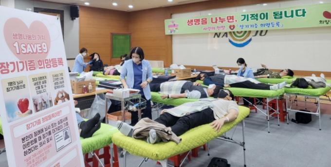 ³ªÁֽô 2ÀÏ ½Ãû»ç ´ëȸÀǽǿ¡¼ ´ëÇÑÀû½ÊÀÚ»ç ±¤ÁÖ¡¤Àü³² Ç÷¾×¿ø°ú °øµ¿À¸·Î ¡®ÇåÇ÷ ¹× Àå±â±âÁõ Èñ¸Á µî·Ï¡¯ Çà»ç¸¦ °¡Á³´Ù°í ¹àÇû´Ù. À̳¯ ÇåÇ÷¿¡´Â ¿ÀÀü 9½ÃºÎÅÍ ¿ÀÈÄ 4½Ã±îÁö °ø¹«¿ø 110¸í, ½Ã¹Î 12¸íÀÌ µ¿ÂüÇß´Ù.