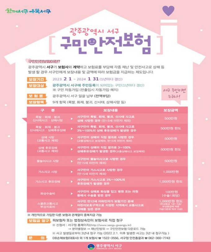 [È£³²´º½º¶óÀÎ = ¼ÀºÈ« ±âÀÚ] ±¤Áֽà ¼±¸(±¸Ã»Àå ±èÀ̰)°¡ Àü ±¸¹ÎÀÌ ÀÚµ¿°¡ÀԵǴ ¡®±¸¹Î¾ÈÀüº¸Ç衯ÀÇ º¸ÀåÇ׸ñÀ» Ãß°¡ÇØ ±¸¹ÎµéÀÇ º¸Çè±Ý ÇýÅÃÀ» ´õ¿í È®´ëÇß´Ù.