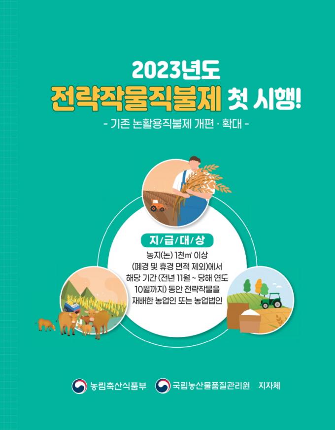 Àü·« ÀÛ¹° Á÷ºÒÁ¦´Â º °úÀ×»ý»êÀ» ÁÙ¿© ½Ò ¼ö±Þ ¾ÈÁ¤À» µµ¸ðÇÏ°í ¼öÀÔÀÇÁ¸µµ°¡ ³ôÀº ¹Ð¡¤Äᡤ°¡·ç½Ò µîÀÇ »ý»êÀ» È®´ëÇØ ³ó»ê¹° ÀÚ¸³µµ¿Í ³ó°¡¼ÒµæÀ» ³ôÀ̱â À§ÇØ ½ÃÇàÇÑ´Ù. Çϰè Á¶»ç·á´Â 2022³âµµ¿¡ º¸¦ Àç¹èÇϰí 2023³â Çϰ迡 ½Å±Ô·Î Á¶»ç·á¸¦ Àç¹èÇÏ´Â ÇÊÁö¿¡ ÇÑ ÇØ Áö±ÞÇÑ´Ù.