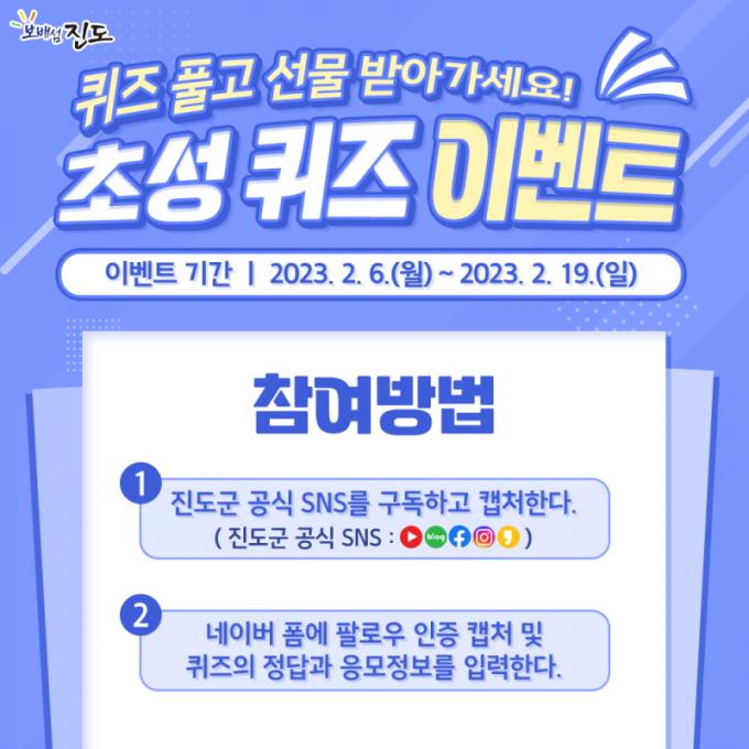 [È£³²´º½º¶óÀÎ = ¼ÀºÈ« ±âÀÚ] Áøµµ±ºÀº ¡®Áøµµ¾Æ¸®¶û¸ô¡¯ Ãʼº ÄûÁî SNS °æÇ° À̺¥Æ®¸¦ °³ÃÖÇÑ´Ù°í 15ÀÏ ¹àÇû´Ù.