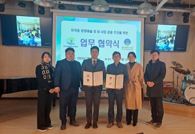 [È£³²´º½º¶óÀÎ = ¼ÀºÈ« ±âÀÚ] ±¤ÁÖ ¼±¸ À¯´öµ¿ ÇàÁ¤º¹Áö¼¾ÅÍ(µ¿Àå ÀÌÁ¾ÁØ)´Â Áö³ 15ÀÏ ¼±¸ °»ê¾ÆÆ®È¦1°ü¿¡¼ û³â±â¾÷ ¢ß°»êÀδõ½ºÆ®¸®(´ëÇ¥ ½Å¹ü½Ä)¿Í ¸¶À» ¹®È¿¹¼úȰµ¿ Áö¿ø ¹× BI(Brand Identity) »ç¾÷ °øµ¿ÃßÁøÀ» À§ÇÑ ¾÷¹«Çù¾àÀ» ü°áÇß´Ù.