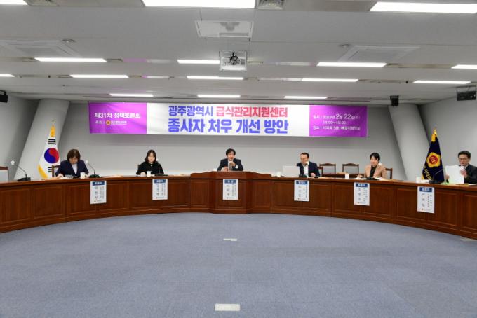 [È£³²´º½º¶óÀÎ = ¼ÀºÈ« ±âÀÚ] ±¤ÁÖ½ÃÀÇȸ´Â 22ÀÏ ¡®±¤ÁÖ ¾î¸°À̱޽İü¸®Áö¿ø¼¾ÅÍ Á¾»çÀÚ Ã³¿ì°³¼± ¹æ¾È ¸¶·Ã¡¯À̶õ ÁÖÁ¦·Î ¼¾ÅÍÁ÷¿øµéÀÇ »ýȰÀÓ±Ý Æ÷ÇÔ¿©ºÎ¸¦ ³íÀÇÇÏ´Â Á¤Ã¥Åä·Ðȸ¸¦ °³ÃÖÇß´Ù.