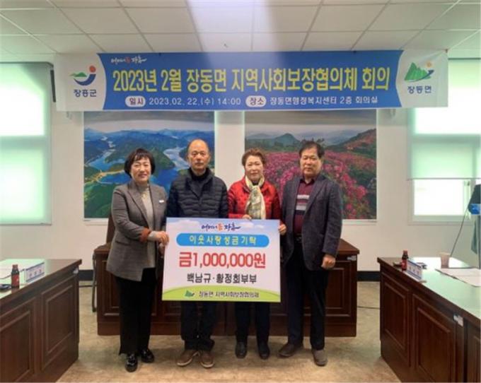 [È£³²´º½º¶óÀÎ = ¼ÀºÈ« ±âÀÚ] ÀåÈﱺ À嵿¸é ¹é³²±Ô, ȲÁ¤Èñ ºÎºÎ°¡ 22ÀÏ ¾î·Á¿î ÀÌ¿ôÀ» À§ÇØ ½á´Þ¶ó¸ç À嵿¸é Áö¿ª»çȸº¸ÀåÇùÀÇü¿¡ »ç¶ûÀÇ ¼º±Ý 100¸¸¿øÀ» ±âŹÇß´Ù.