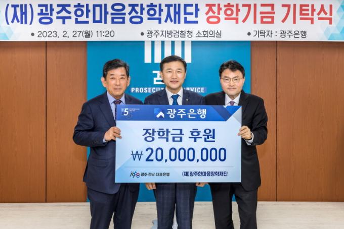 À̳¯ Àü´Þ½Ä¿¡´Â °íº´ÀÏ ±¤ÁÖÀºÇàÀå°ú À̼ö±Ç ±¤ÁÖÁö¹æ°ËÂûû °Ë»çÀå, ÇÑ»ó¿ø (Àç)±¤ÁÖÇѸ¶À½ÀåÇÐÀç´Ü ÀÌ»çÀåÀÌ Âü¼®ÇßÀ¸¸ç, Àü´ÞµÈ ÀåÇбÝÀº ¼±µµÁ¶°ÇºÎ ±â¼ÒÀ¯¿¹ û¼Ò³â°ú »ý°è°¡ ¾î·Á¿î ¸ð¹ü û¼Ò³â µî¿¡°Ô ÀåÇбÝÀ¸·Î Áö±ÞµÉ ¿¹Á¤ÀÌ´Ù.