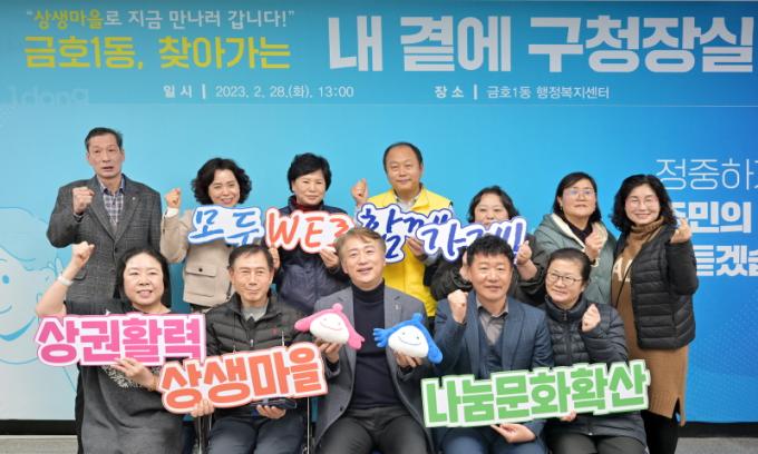 ¶ÇÇÑ, Á÷Á¢ ÀÏÀÏ Ä£Àý¸Å´ÏÀú·Î Ȱµ¿ÇÏ¸ç ¹Î¿øÀÎÀÇ ºÒÆí »çÇ×°ú Á÷¿øµéÀÇ ±Ù¹« ¿©°ÇÀ» »ìÇǰí ÇàÁ¤¼ºñ½º Áú Çâ»óÀ» À§ÇÑ ÀǰßÀ» ¼ö·ÅÇß´Ù. ÀÌ ¹Û¿¡µµ ¿¥¸¶¿ì½ºÀÏÅÍ ¹× ¸¶À»Ä¿¹Â´ÏƼ¼¾ÅÍ(ǰ´Ù) ¹æ¹®, ±ÝÈ£1µ¿ ¸ÔÀÚ°ñ¸ñ »ó°¡º° ¾Ö·Î»çÇ× Ã»Ãë ¹× ¾ß¿Ü ¼Ò°ø¿¬Àå ÇöÀå ½Ç»ç, »ó»ý¸¶À» DJÆÄƼ Âü¼® µî À̳¯ ¡®³»°ç¿¡ ±¸Ã»Àå½Ç¡¯ÀÏÁ¤ÀÌ ÁֹεéÀÇ ¶ß°Å¿î È£ÀÀ ¼Ó¿¡ ¿ÀÈÄ 9½Ã±îÁö À̾îÁ³´Ù.