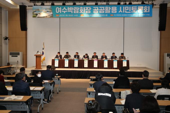 À̳¯ Åä·Ðȸ´Â Àü³²µµÀÇȸ °¹®¼º ÀÇ¿ø°ú ¿©¼ö½ÃÀÇȸ °ÇöÅ ÀÇ¿ø, ¿©¼ö¼¼°è¹Ú¶÷ȸÀå °ø°øÈ°¿ë ½Ã¹Î¿¬´ë°¡ °øµ¿ÁÖÃÖÇßÀ¸¸ç, ÁÖöÇö ±¹È¸ÀÇ¿øÀ» ºñ·ÔÇØ Àü³²µµÀÇȸ ½Å¹ÎÈ£ ±âȹÇàÁ¤À§¿øÀå, ÁÖÁ¾¼· ÀÇ¿ø, À̱¤ÀÏ ÀÇ¿ø, ¿©¼ö½ÃÀÇ¿ø, ¿©¼ö½Ã¹Î ¹× ½Ã¹Î´Üü ȸ¿ø µî 200¿© ¸íÀÌ Âü¼®Çß´Ù. Åä·Ð¿¡´Â ±è¿ëÅÂ ÇØ¾ç¼ö»êºÎ ÇØ¾çÁ¤Ã¥°úÀå°ú À¯°ü±â°ü °ø¹«¿ø, Àü¹®°¡°¡ Âü¼®ÇØ ¹Ú¶÷ȸÀåÀÇ »çÈÄȰ¿ë ¹æ¾È ¸¶·ÃÀ» À§ÇÑ ½Éµµ ÀÖ´Â ³íÀÇÀÇ ½Ã°£À» °¡Á³´Ù.