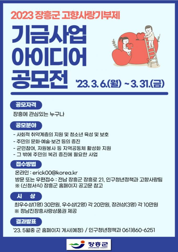 [È£³²´º½º¶óÀÎ = ¼ÀºÈ« ±âÀÚ] ÀåÈﱺÀº 2024³â¿¡ ÃßÁøÇÒ °íÇâ»ç¶û±âºÎÁ¦ ±â±Ý»ç¾÷ ¾ÆÀ̵ð¾î¸¦ 3¿ù 31ÀϱîÁö °ø¸ðÇÑ´Ù°í ¹àÇû´Ù.