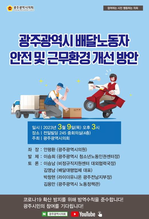 [È£³²´º½º¶óÀÎ = ¼ÀºÈ« ±âÀÚ] ±¤ÁÖ±¤¿ª½ÃÀÇȸ ¾ÈÆòȯ ÀÇ¿ø(´õºÒ¾î¹ÎÁÖ´ç, ºÏ±¸1)ÀÌ ¿À´Â 9ÀÏ ¿ÀÈÄ 3½Ã ÀüÀϺôµù245 ÁßȸÀǽǿ¡¼ ¡®¹è´Þ³ëµ¿ÀÚÀÇ ¾ÈÀüÇÑ ±Ù¹«È¯°æ °³¼± ¹æ¾È ¸¶·ÃÀ» À§ÇÑ Á¤Ã¥Åä·Ðȸ¡¯¸¦ °³ÃÖÇÒ ¿¹Á¤ÀÌ´Ù.