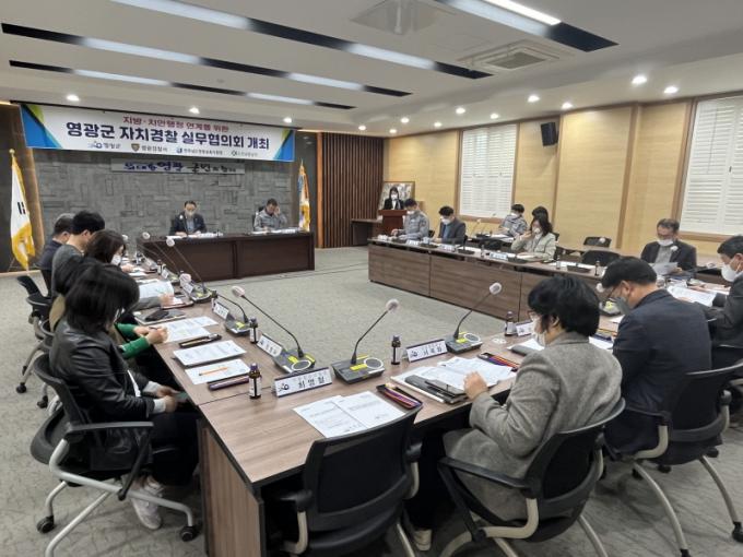 ÀÚÄ¡°æÂûÁ¦°¡ Àü¸é ½ÃÇà(¡®21. 7.)µÊ¿¡ µû¶ó ¿µ±¤±ºµµ Áö³ÇØ Á¶·Ê¸¦ Á¦Á¤Çϰí, °ü°è±â°ü °£ ¾÷¹«Çù·Â¡¤Á¶Á¤À» À§ÇØ Áö³ 2¿ù¿¡´Â ¿µ±¤±º¡¤¿µ±¤°æÂû¼¡¤¿µ±¤±³À°Ã»¡¤µµ·Î±³Åë°ø´Ü(±¤ÁÖÀü³²ÁöºÎ) ¼Ò¼Ó ÆÀÀå±Þ ÀÌ»óÀ¸·Î ¿µ±¤±º ÀÚÄ¡°æÂû½Ç¹«ÇùÀÇȸ(°øµ¿ÇùÀÇȸÀå ÀÌ¿µ±æ¡¤Á¤¼ºÁØ)¸¦ ±¸¼ºÇß´Ù.