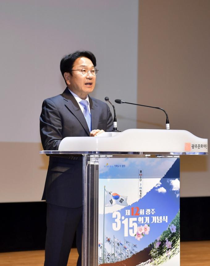 ¶ÇÇÑ, ° ½ÃÀåÀº ¡°±¤ÁÖ¿¡¼ ½ÃÀÛµÈ 3¡¤15ÀÇ°Å¿Í µ¶ÀçÁ¤±ÇÀ» ²ø¾î³»¸° 4¡¤19Çõ¸íÀº ¹ÎÁÖÁÖÀÇÀÇ ¼¸·À» ¿¬ ´ëÇѹα¹ÀÇ À§´ëÇÑ ¿ª»ç´Ù¡±¸ç ¡°¿ì¸®´Â ±× ¿ª»ç¿Í Á¤½ÅÀ» ¿ÂÀüÈ÷ °è½Â ¹ßÀü½Ã۸ç, »õ·Î¿î ±¤Áֽôë·Î ³ª¾Æ°¡·Á ÇÑ´Ù¡±°í ¸»Çß´Ù.