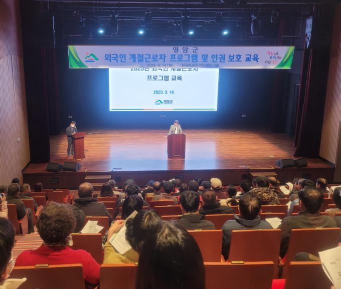 À̳¯ ±³À°Àº ¿ÃÇØ 80³ó°¡, 220¸í ±Ô¸ð·Î ¹èÁ¤ ¿¹Á¤ÀÎ ¿Ü±¹ÀÎ °èÀý±Ù·ÎÀÚµéÀÇ ÀÔ±¹À» ¾ÕµÎ°í °èÀý±Ù·ÎÀÚ °¡Á· 170¸í°ú °í¿ëÁÖ 80¸í µîÀ» ´ë»óÀ¸·Î ½Ç½ÃÇÑ »çÀü ±³À°À¸·Î, ¡â¿Ü±¹ÀÎ °èÀý±Ù·ÎÀÚ ÇÁ·Î±×·¥ ¾È³» ¡â¿Ü±¹ÀÎ ±Ù·ÎÀÚÀÇ Àαǡ¤¹ý·ü¡¤»ýȰ¾ÈÀü ±³À°(Àü³²ÀαDZ³À° À§Ã˰»ç <À̰æÀÚ> Ãʺù) ¡â¿Ü±¹ÀÎ ±Ù·ÎÀÚÀÇ ÅëÀå °³¼³ ¾È³»(³óÇùÁß¾Óȸ ¿µ¾Ï±ºÁöºÎ) ¼øÀ¸·Î ÁøÇàµÇ¾ú´Ù.